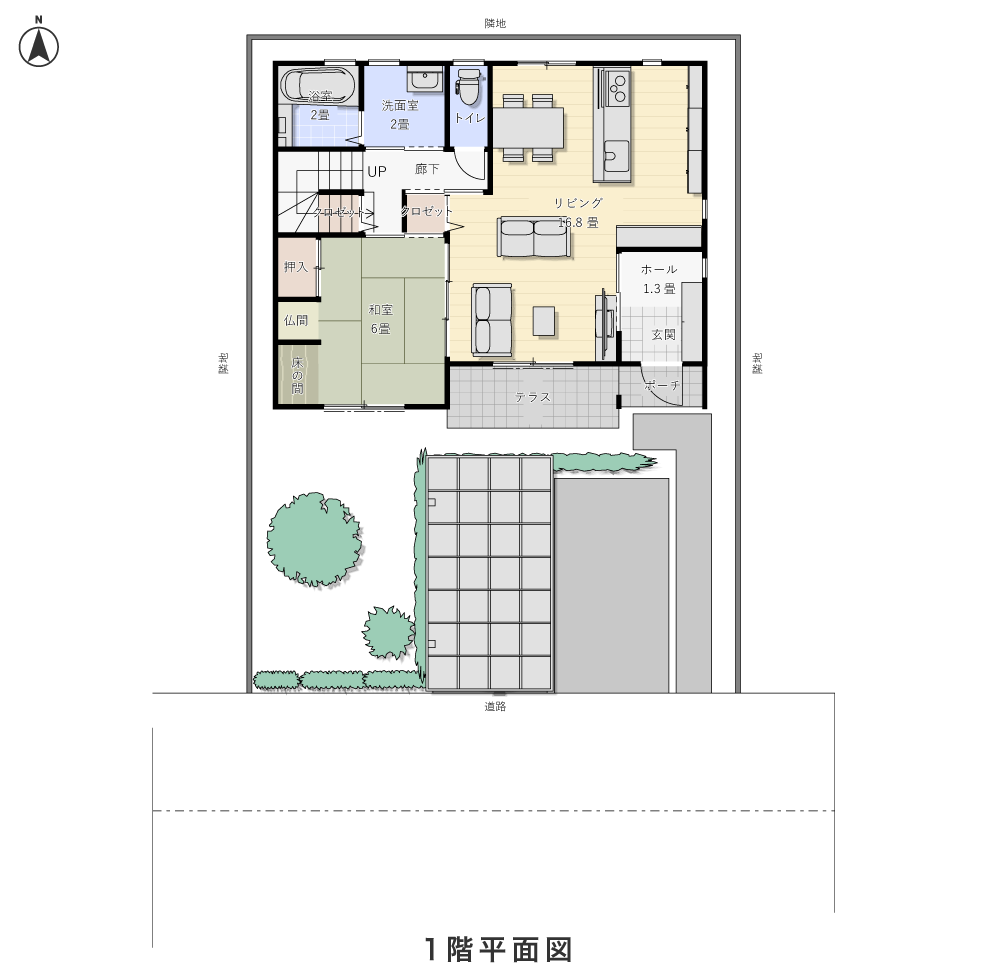 バルコニー、ポーチ、屋根は含まれません。また、表示の数値は、小数点以下切り捨てをした数値となっております。